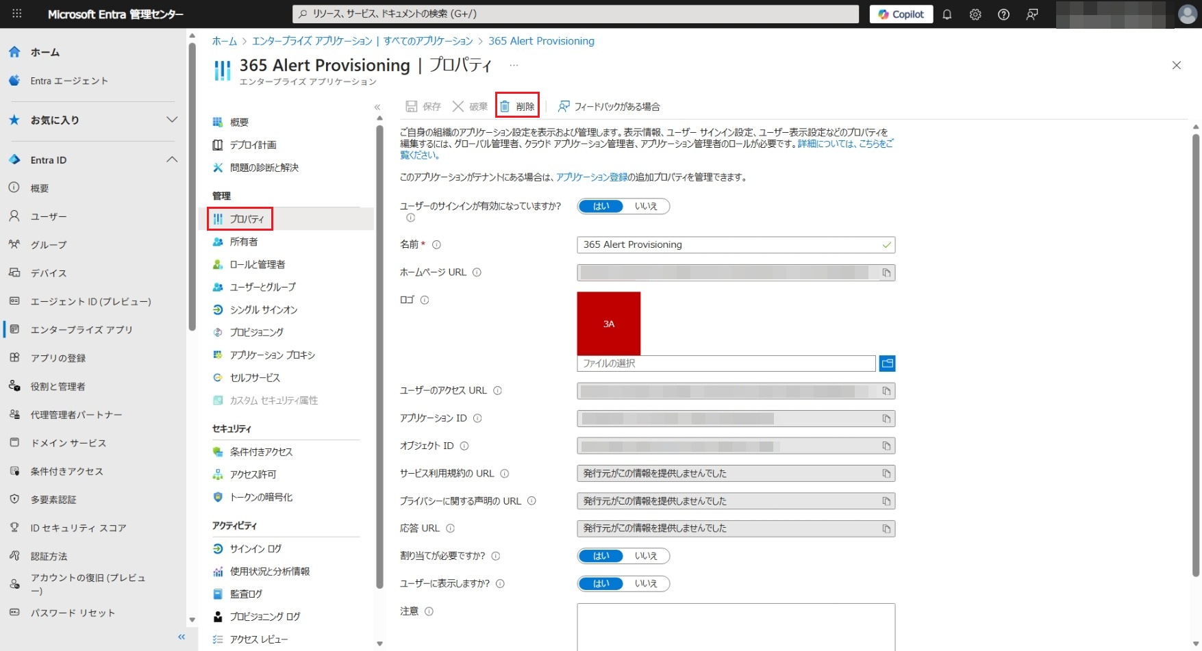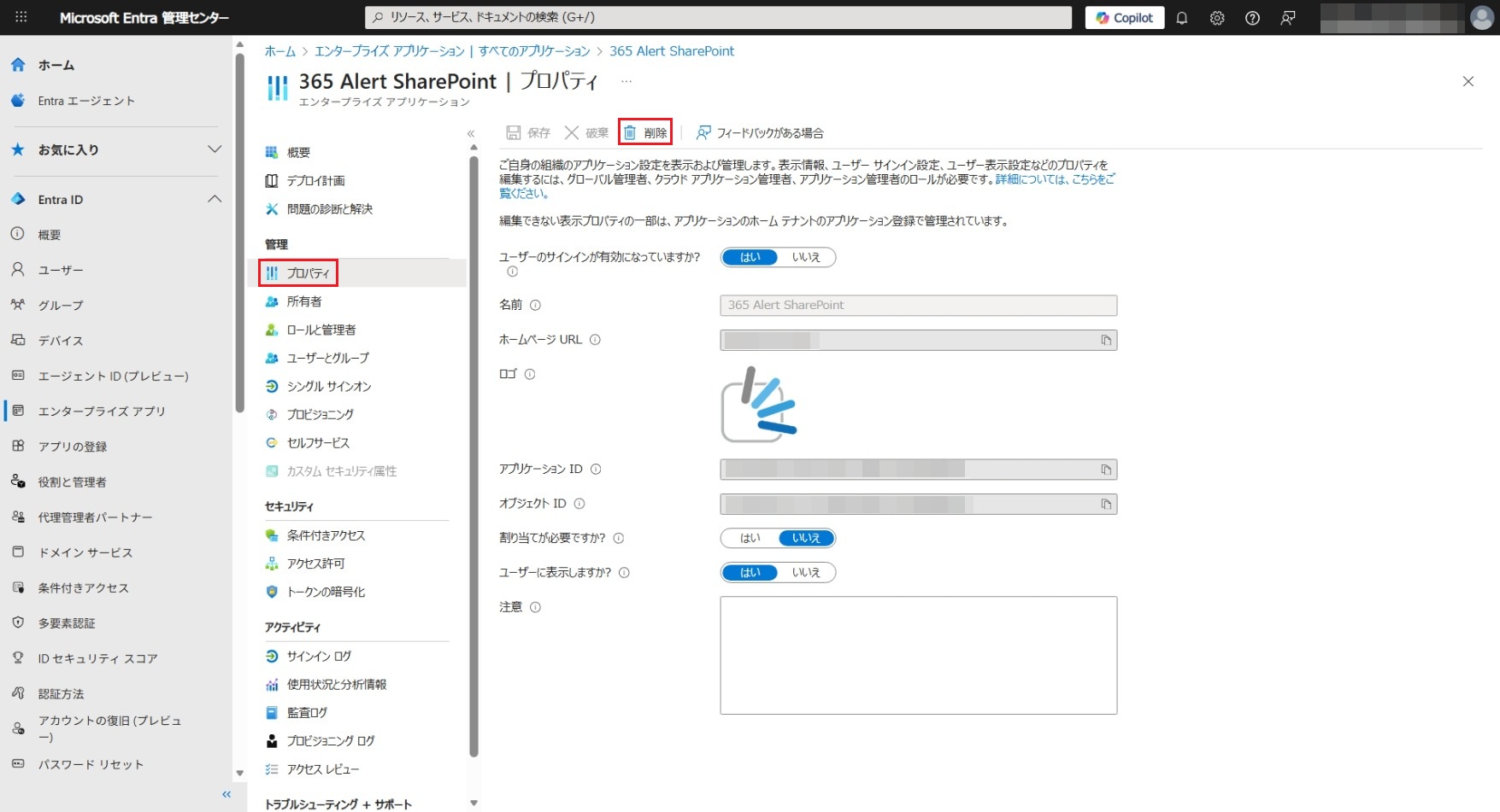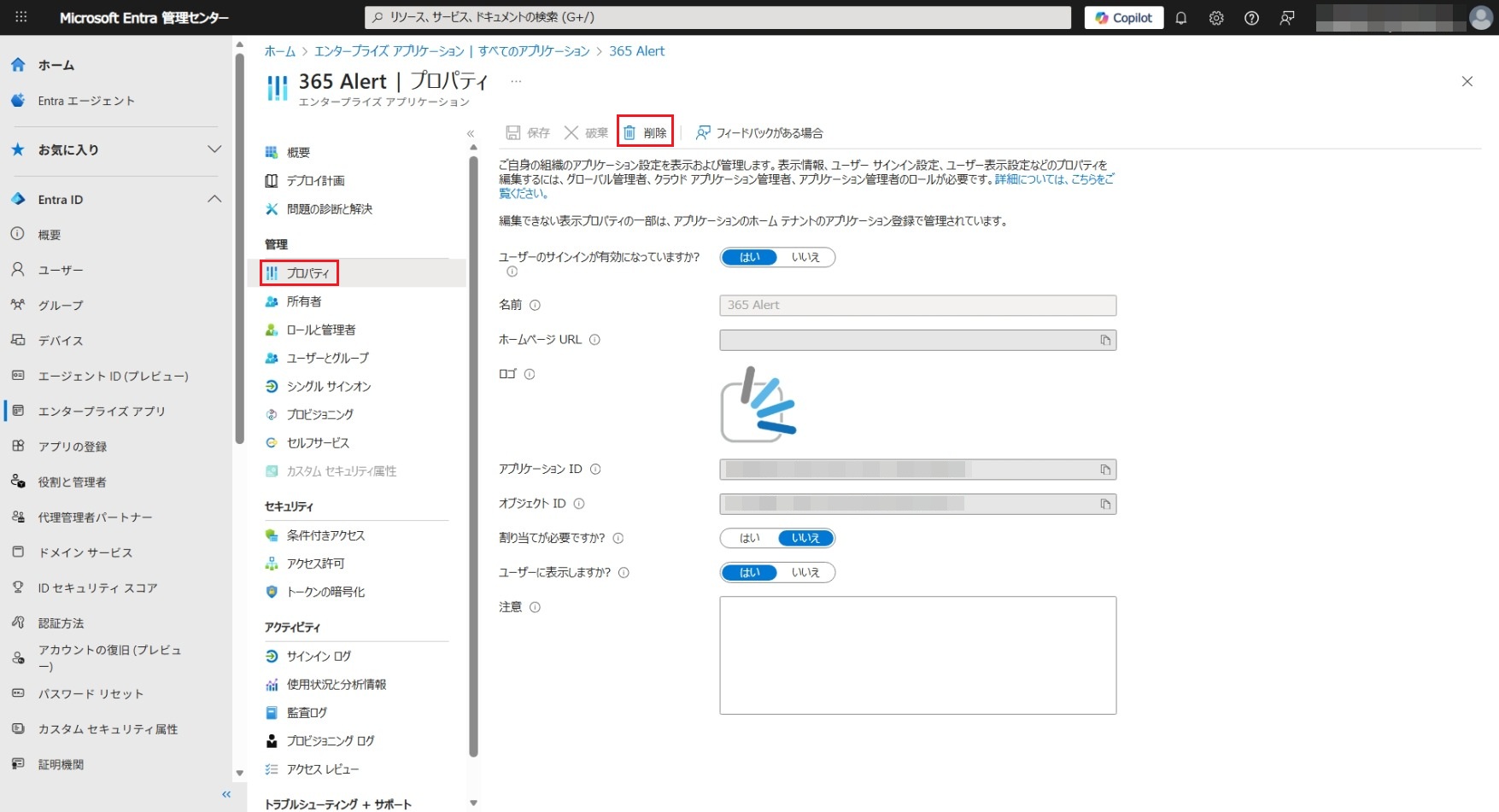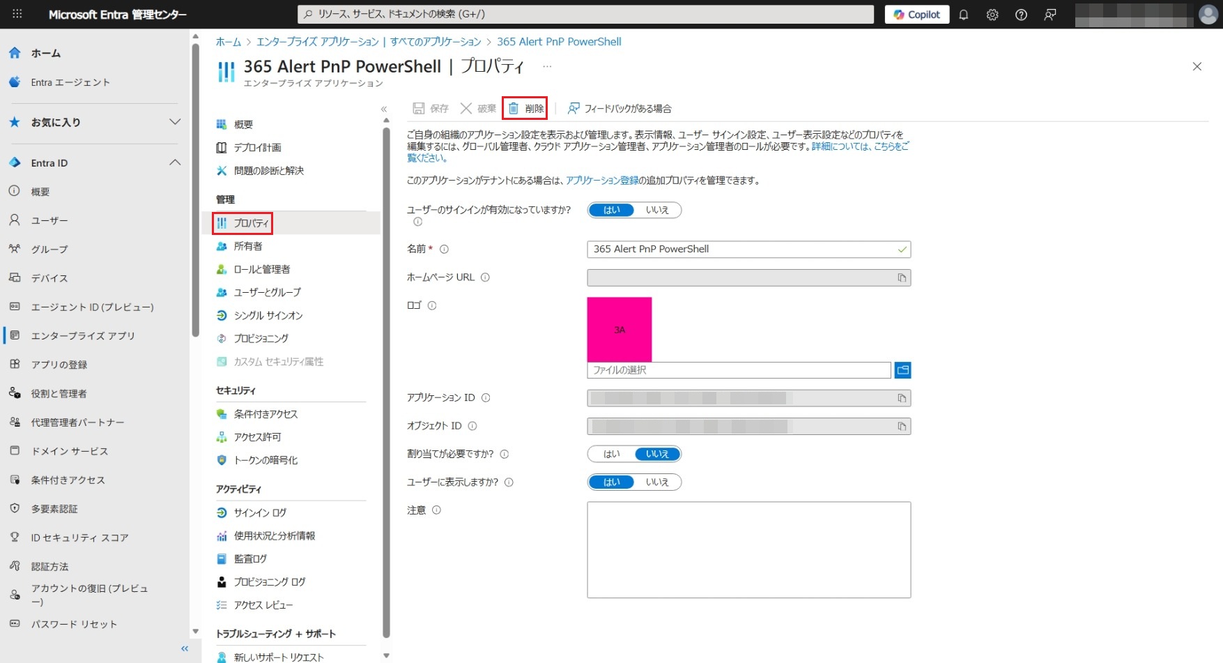 Microsoft Entra IDアプリの削除手順