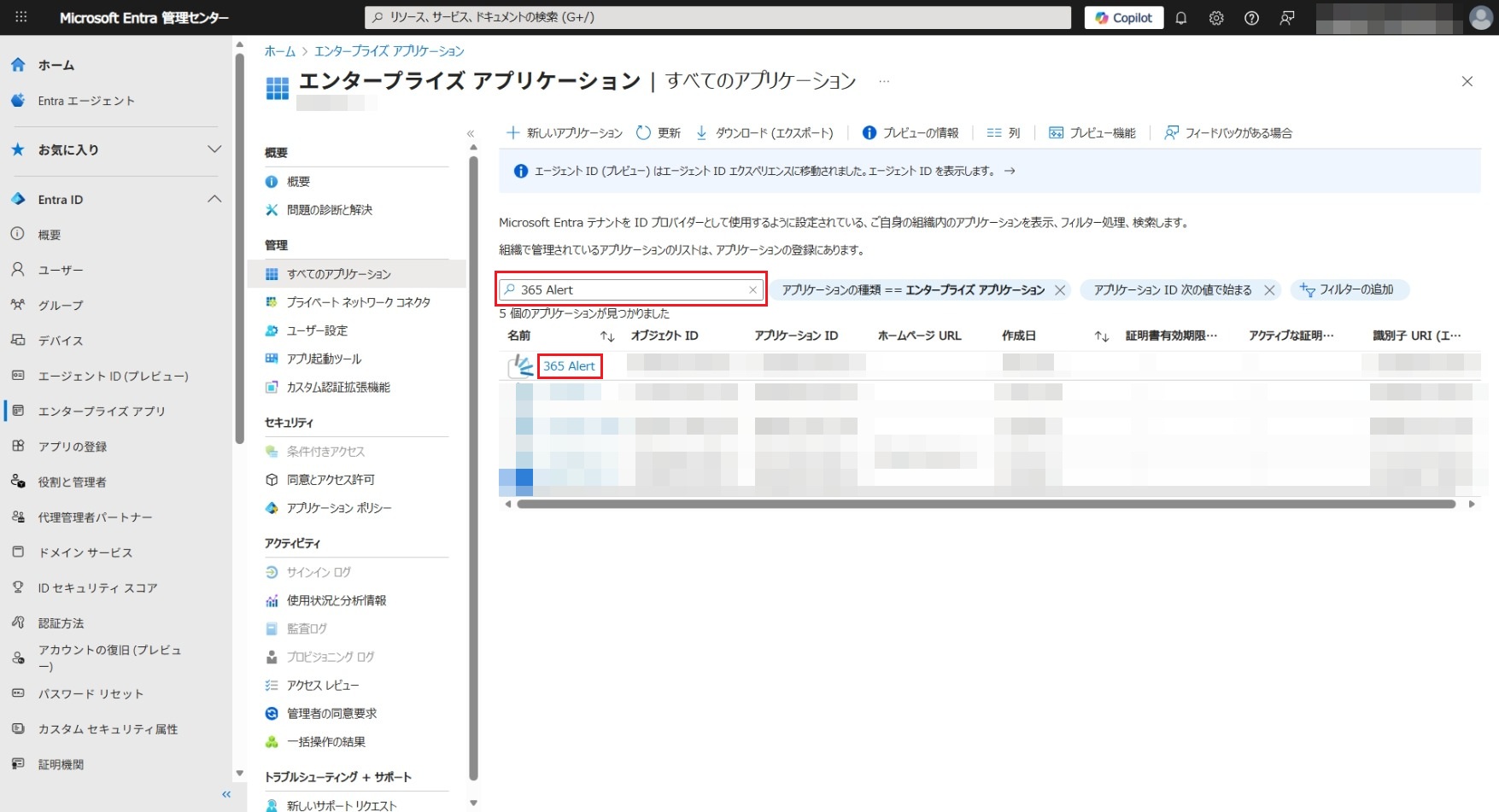 365 Alertでは以下のMicrosoft Entra ID(旧称Azure AD)アプリを使用します。