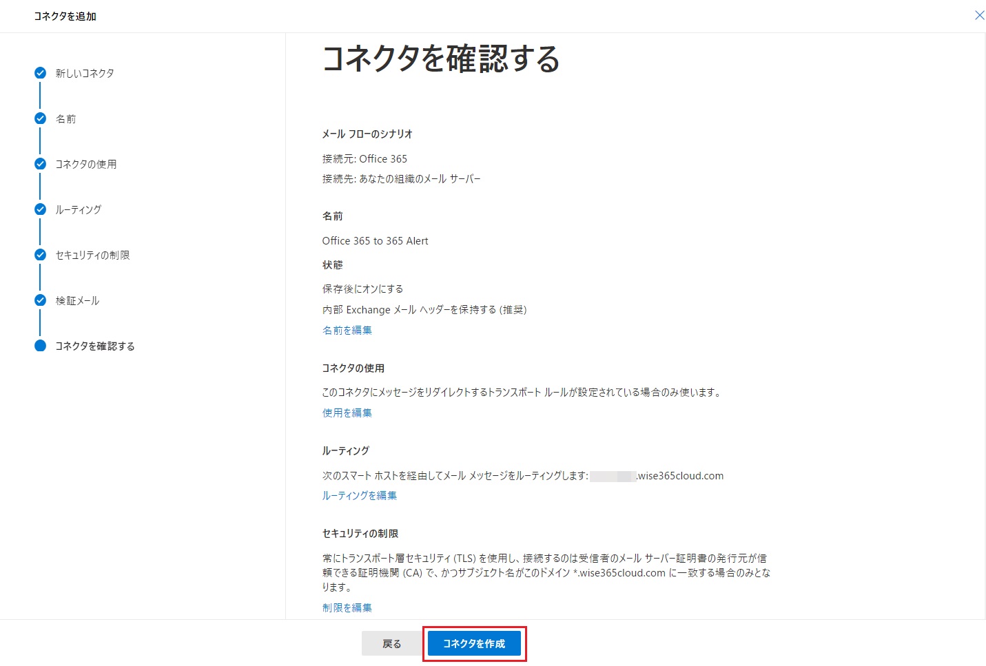 以上で、365 Alert (Inbound)コネクタの作成は完了です。