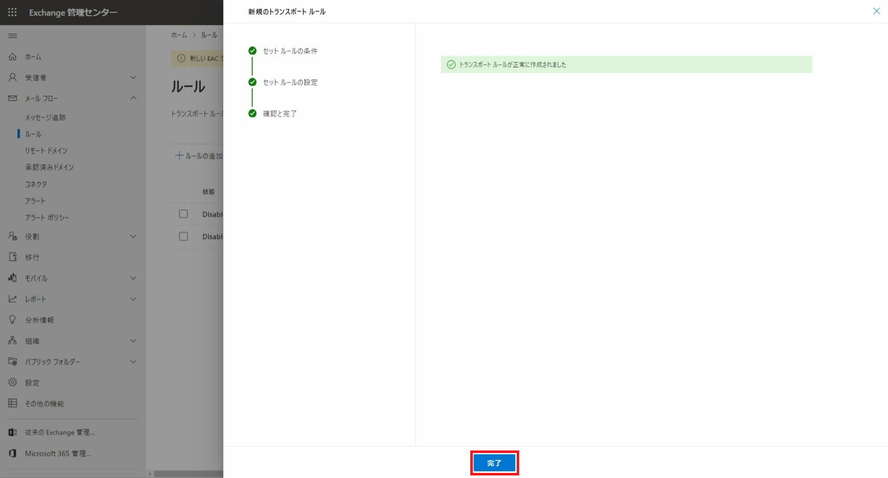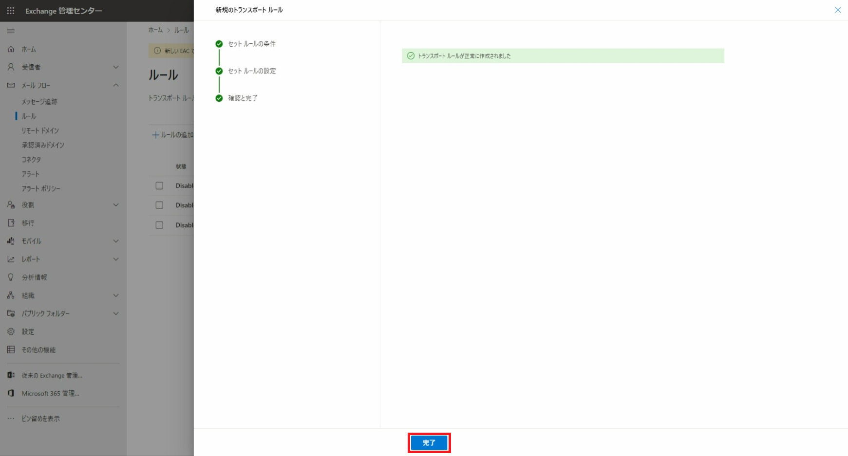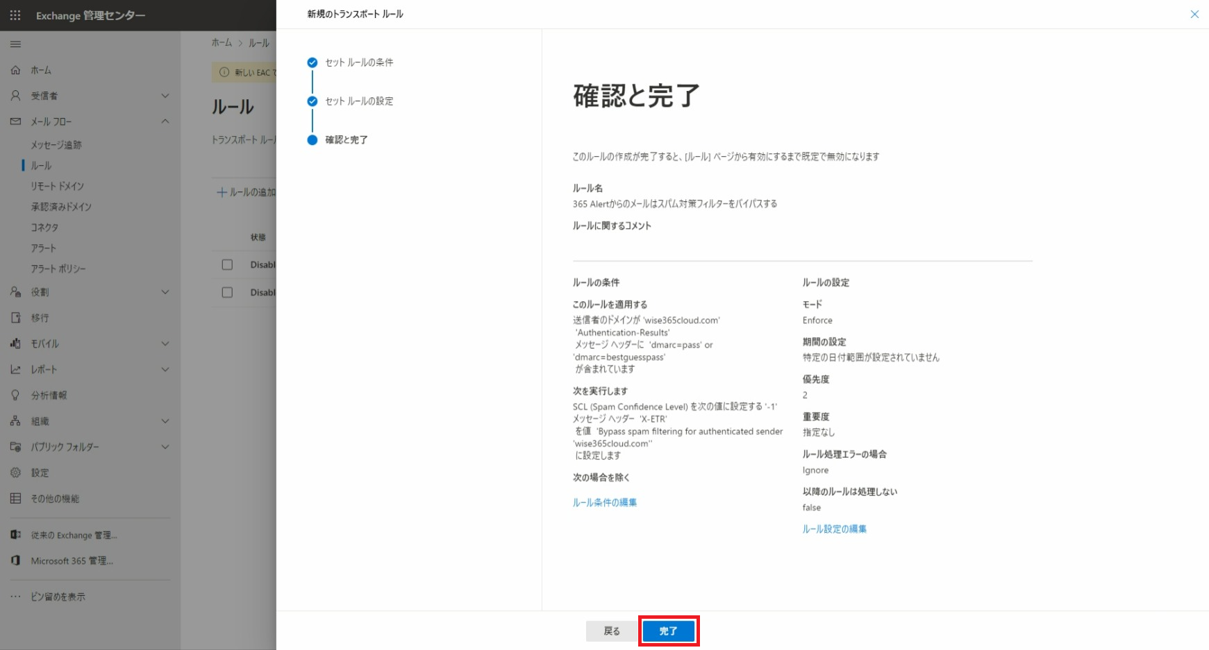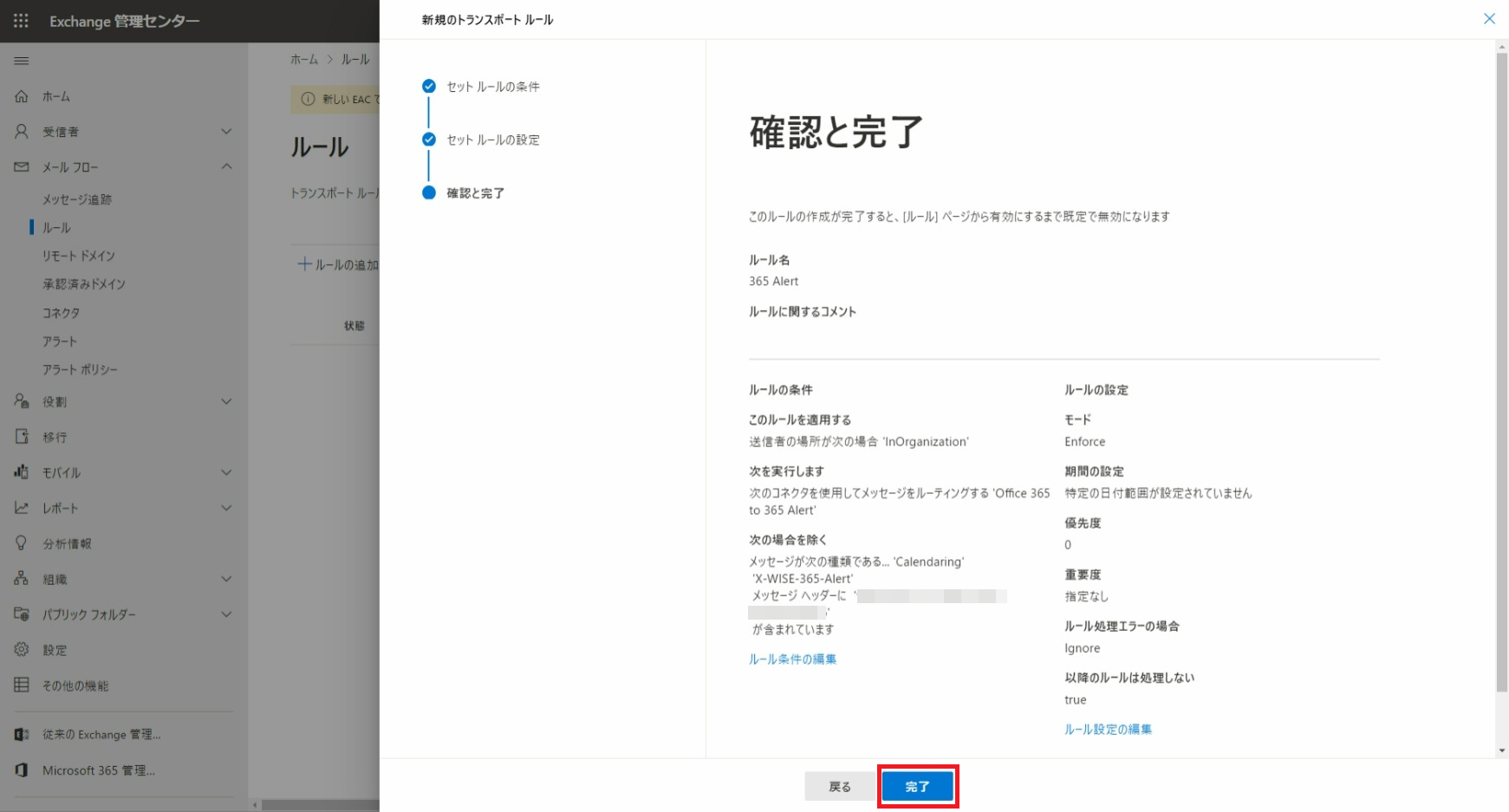 以上で、365 Alert Inboundメールフロールールの作成は完了です。