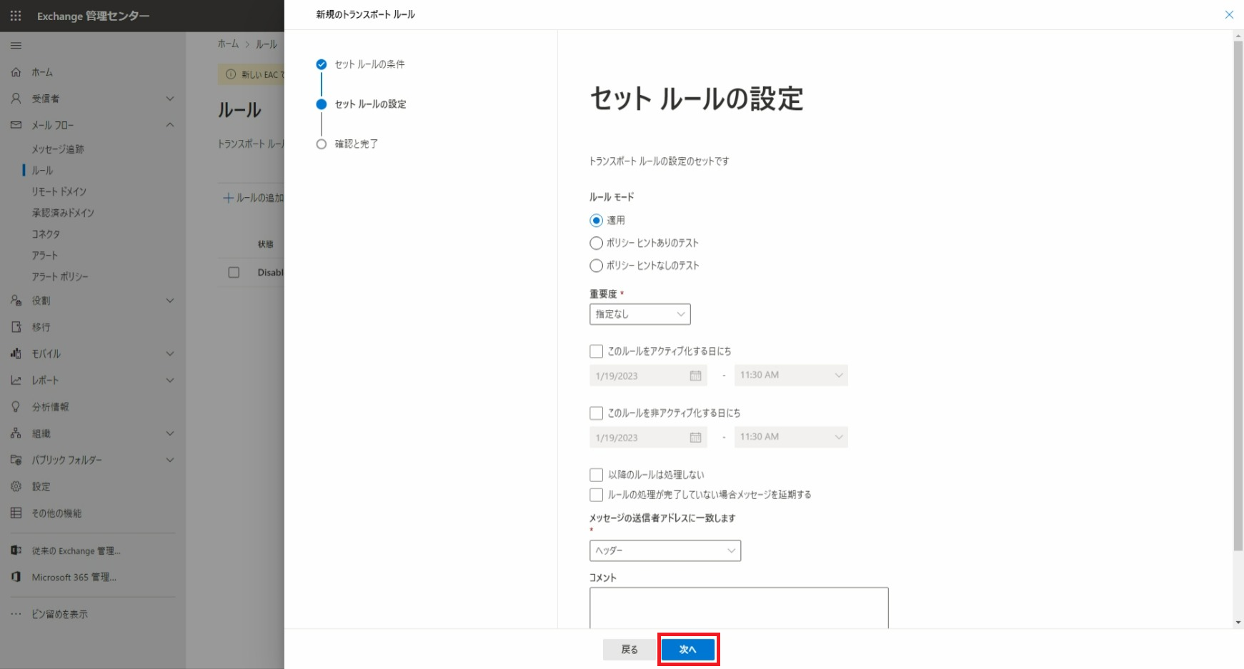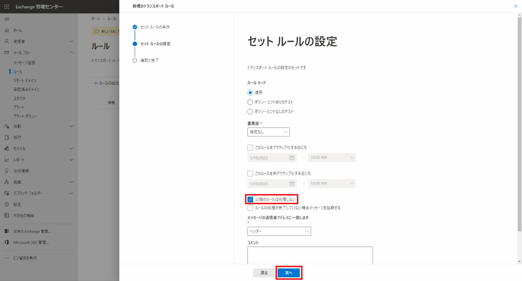 他のメールフロールールがすでに存在する場合は、適切な優先度を設定してください。