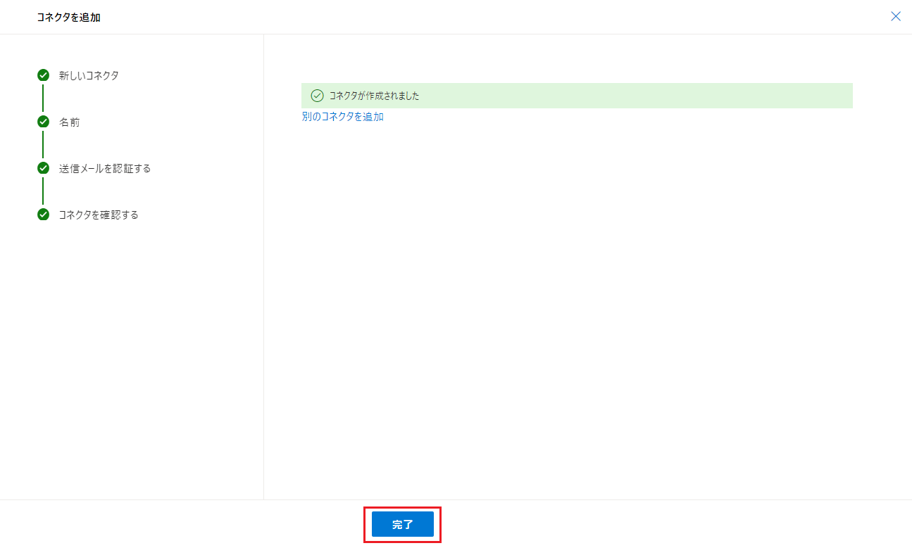 10. 以下の画面が表示されます。確認後、[コネクタを作成]をクリックします。