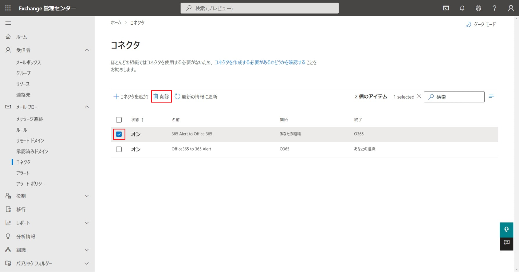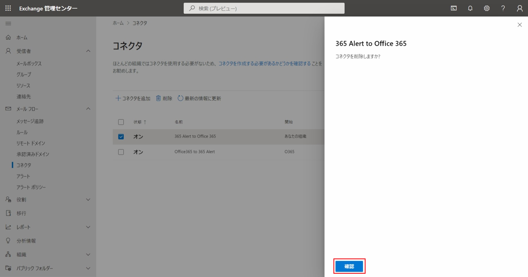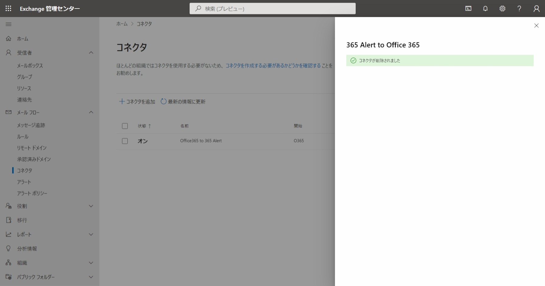 • 365 Alert (Inbound)コネクタはこちらの手順で作成した場合に削除してください。