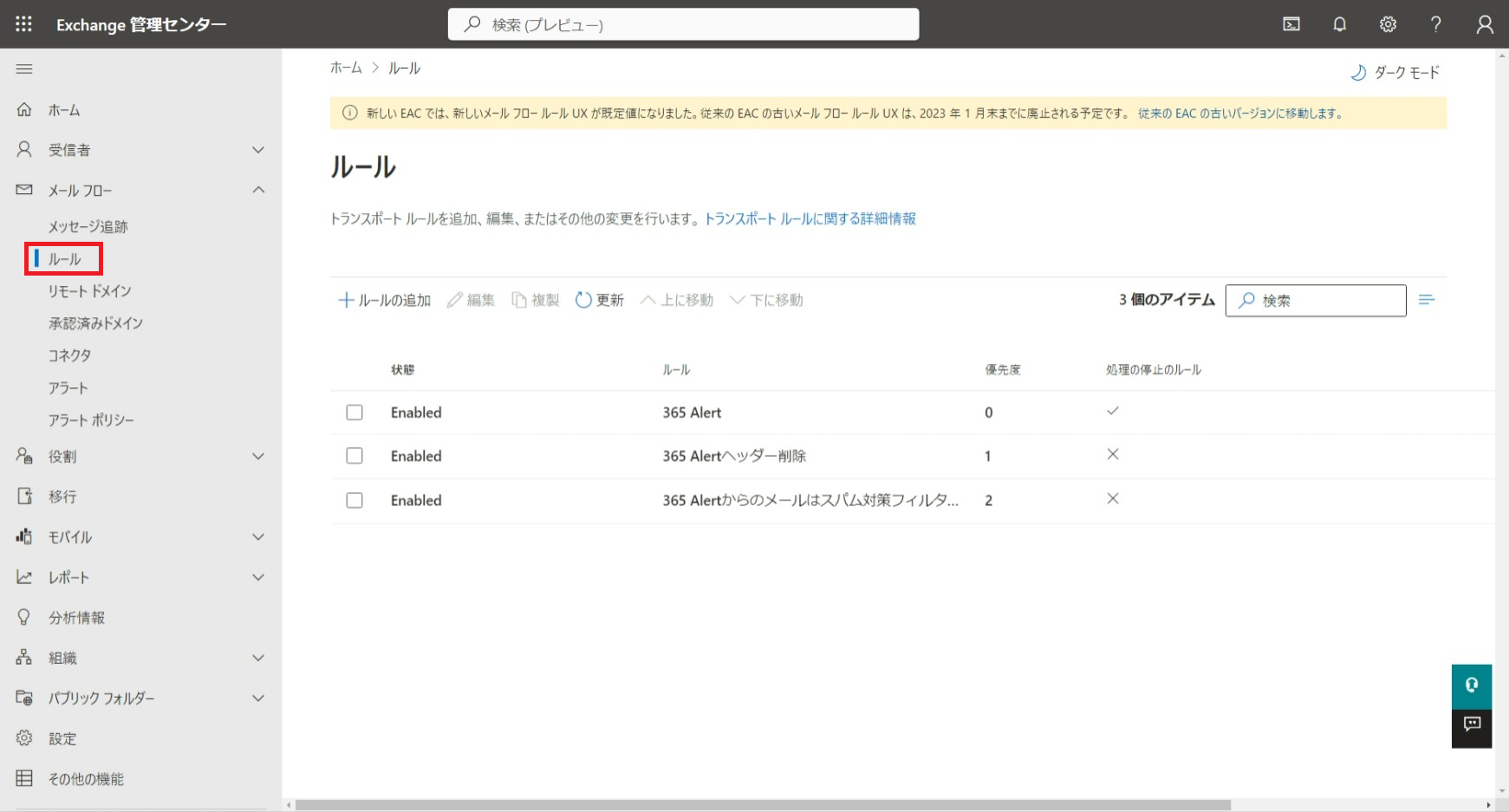 365 Alertサービスへの転送ルールの無効化・有効化手順