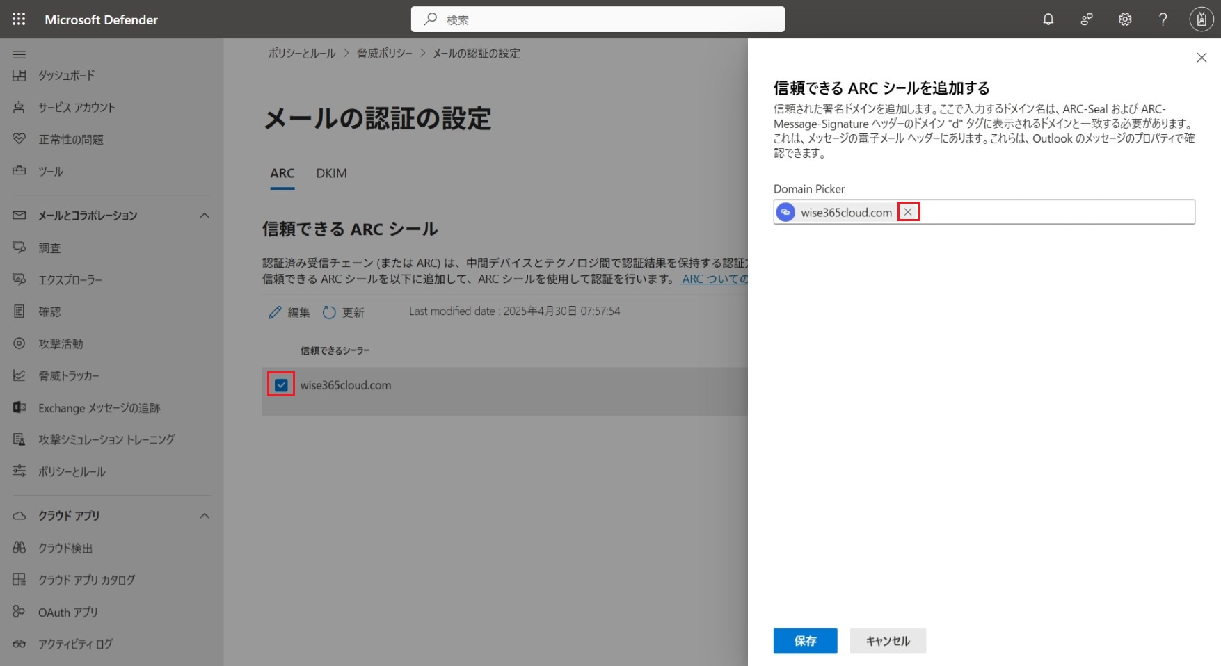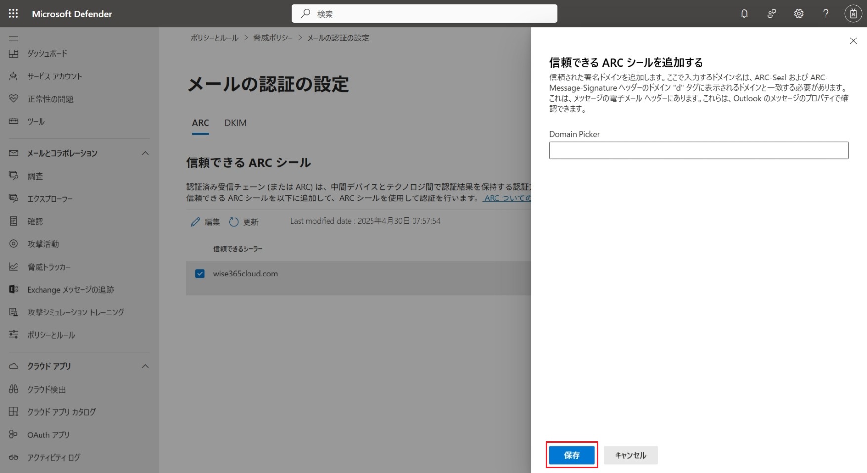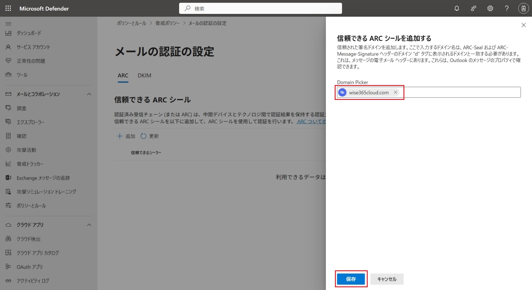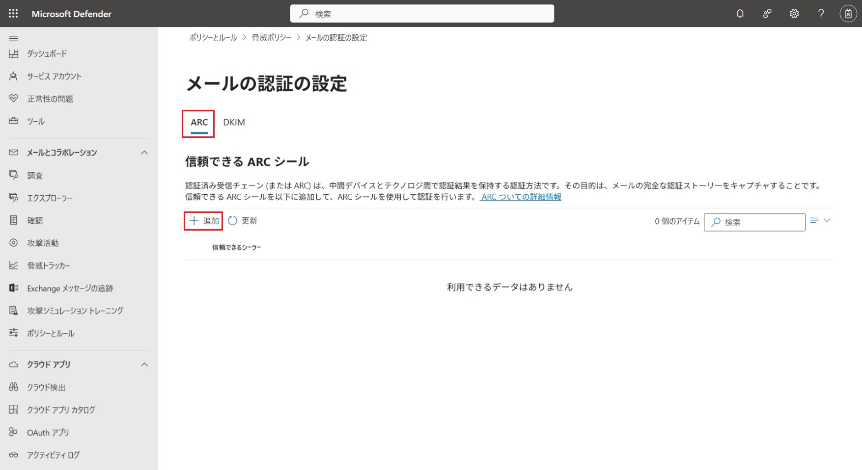 1.は365 Alertサーバーで既に有効化されていますので、以下では2.の信頼できるARCシーラーの追加手順を記載します。
