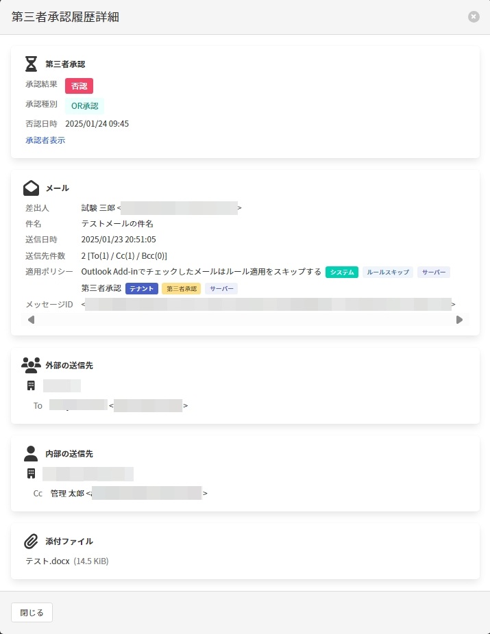 承認者情報(承認/否認日時)該当承認者が承認または否認した日時が表示されます。