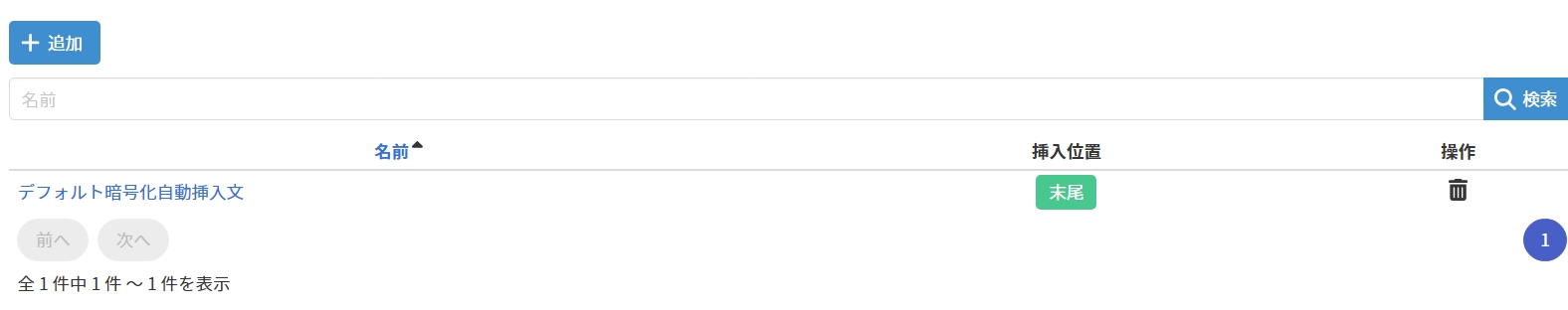 自動挿入文テンプレート一覧の[操作]列のをクリックすると該当自動挿入文テンプレートが削除されます。