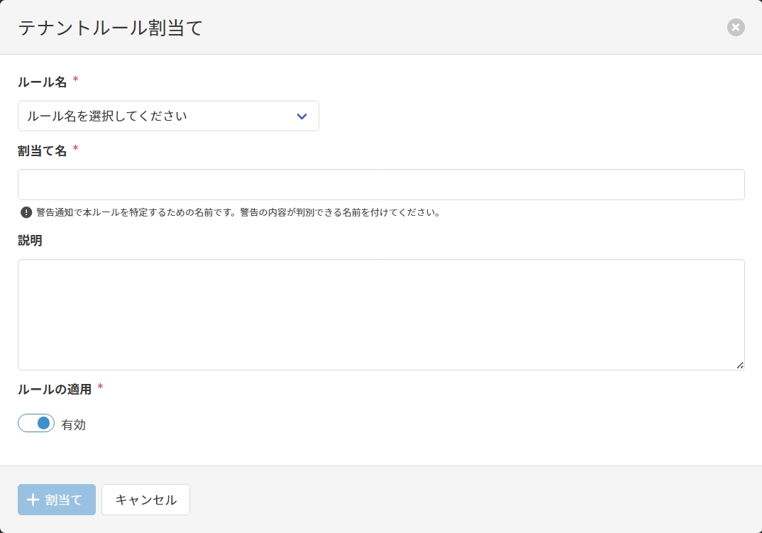 ルール割当て画面で以下の項目を入力し、[割当て]をクリックしてルールを追加します。