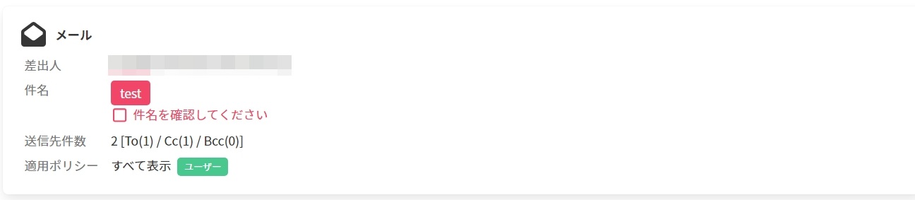 1. [添付ファイルつき]または[添付ファイルつきで送信先に外部ドメインを含む]が有効の場合