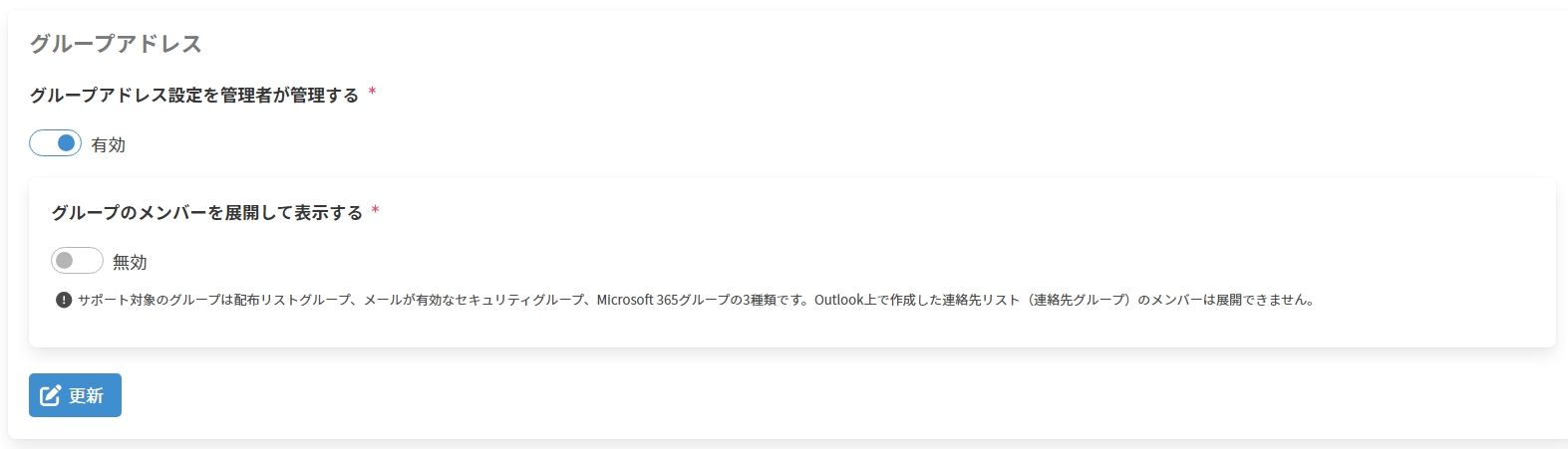 ※ テナントルールで[グループアドレス設定を管理者が管理する]が無効の場合は本項目は非表示です。
