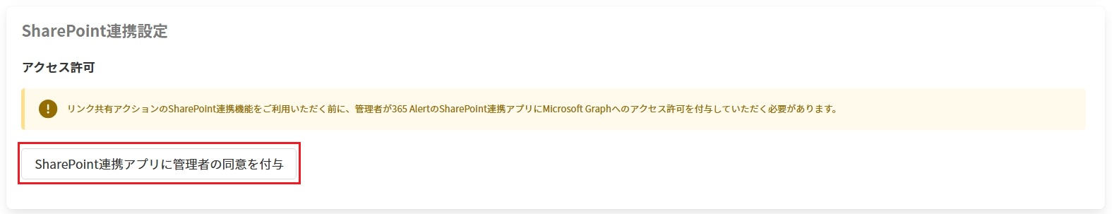 [SharePoint連携アプリに管理者の同意を付与]をクリックします。